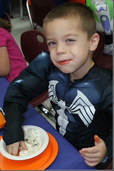 Well, this year there were plenty of red Spidermans, but no black Spidermans. Apparently, the other parents in his class were confused, as they are clearly not comic book readers. Their children all came home telling them that Luke was going to be “black Spiderman” and they thought their kids were making it up. :)